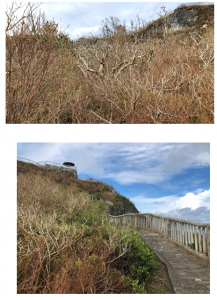 During the late afternoon of September 10, 2018, Typhoon Mangkhut passed directly over the island of Rota. Though described as major by local Homeland Security officials, the level of damage to vegetation and older wooden homes made of plywood and weathered corrugated metal roofing was notably below the devastating or catastrophic effects of a major (i.e., CAT 3 or higher) hurricane/typhoon. Measured rainfall at the Rota International Airport (4.84 inches) was also relatively light for the direct eye passage of a typhoon. Damage to infrastructure was moderate, with only a few wooden power poles blown down, and isolated incidences of electrical and phone wires stripped away and lying in the roadways.